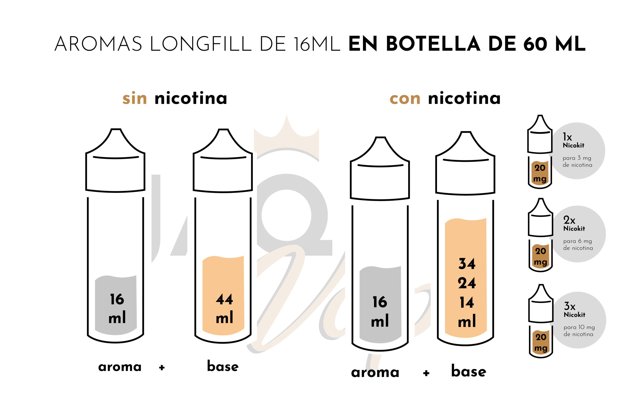 - Maceración: 2 a 7 días (Si utilizas base de maceración instantánea, será vapeable desde la misma mezcla, sin esperas)