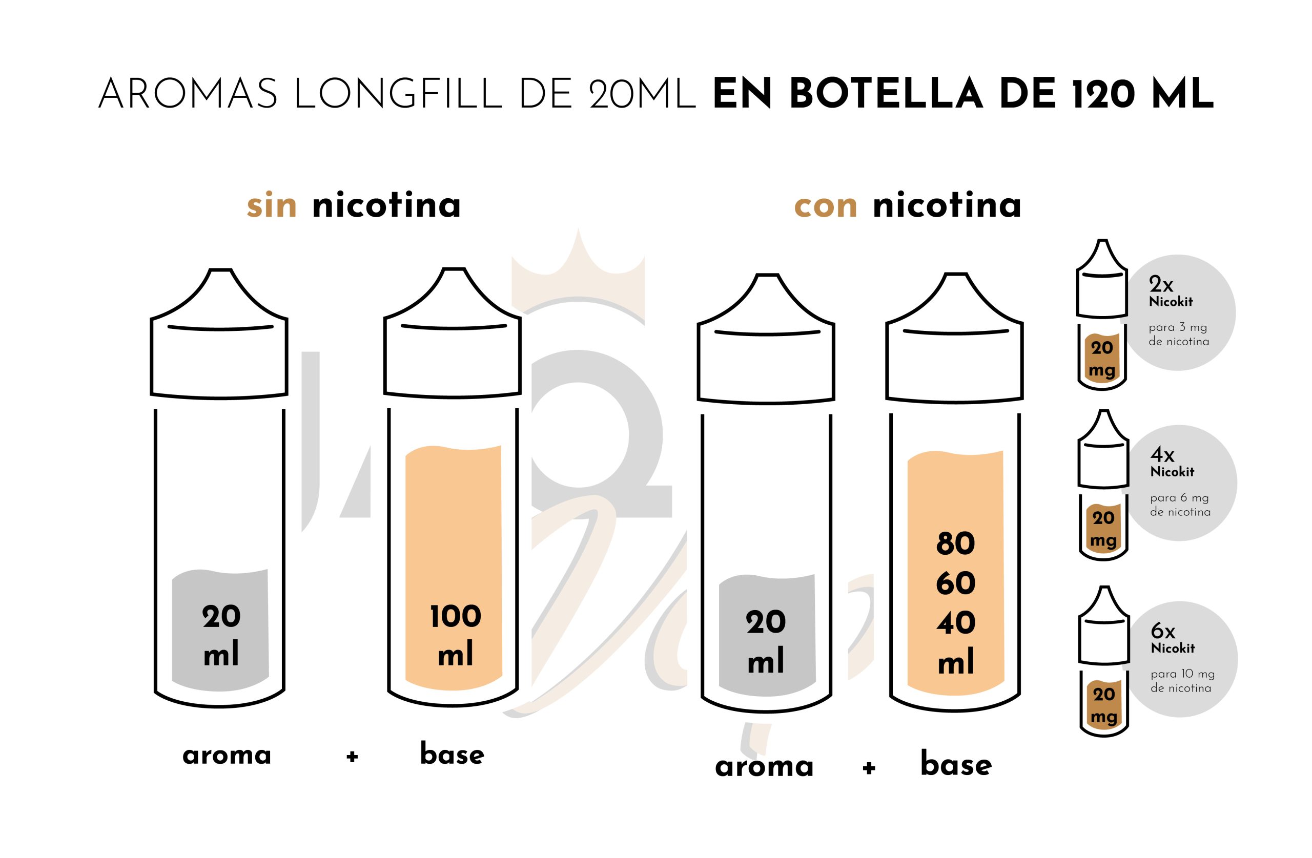 - Botella de 120ml con 20 ml de aroma