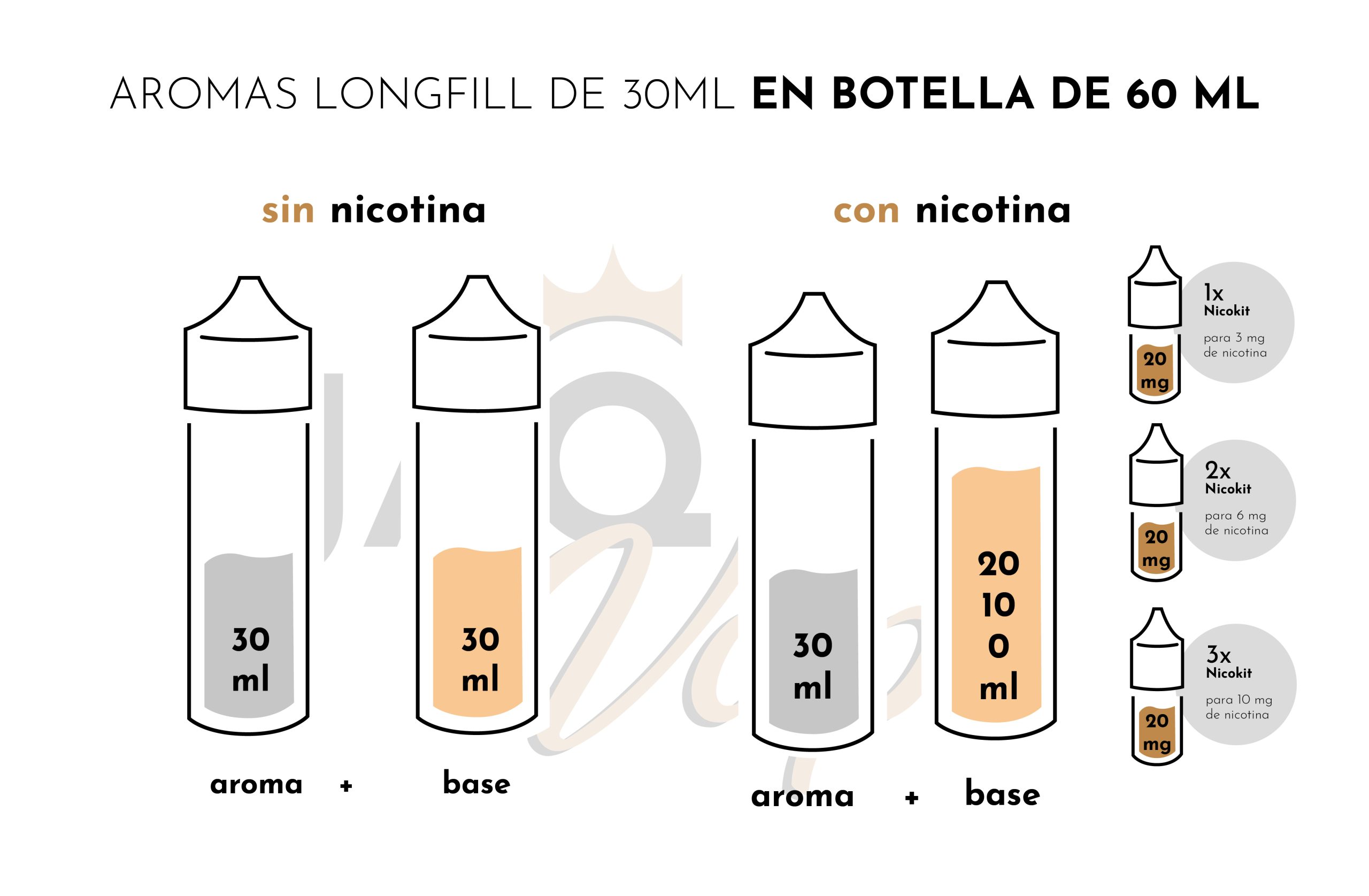 - Maceración: 5 a 15 días (Si utilizas base de maceración instantánea, será vapeable desde la misma mezcla, sin esperas)
