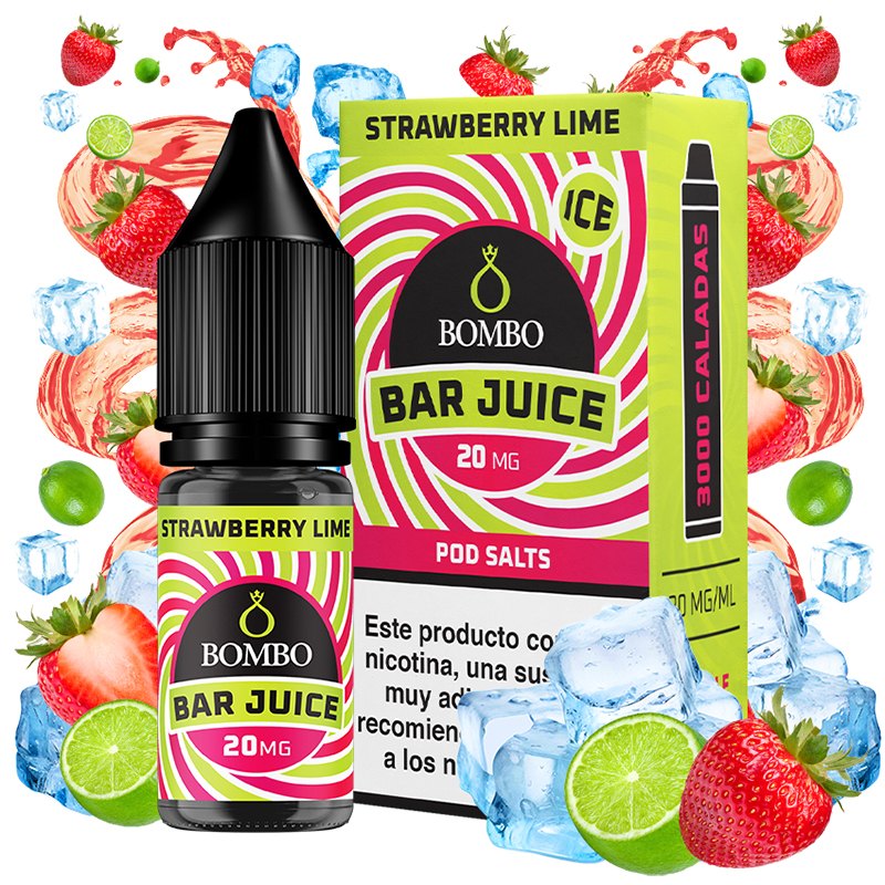 El líquido Strawberry Lime Ice de Bar Juice by Bombo ofrece un sabor único a fresa, con un toque cítrico de lima. ¡Intenso y refrescante!