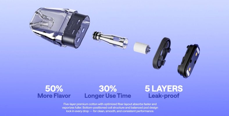 Gracias a la tecnología Unitech 2.0, este dispositivo ofrece un sabor multicapa, tiene una vida útil más larga y ofrece una experiencia a prueba de fugas. El algodón premium de cinco capas, con una distribución optimizada de las fibras, absorbe más rápido y vaporiza con mayor volumen. La estructura de resistencia en la parte inferior y el diseño equilibrado de la cápsula, retienen cada gota para un rendimiento limpio, suave y consistente.