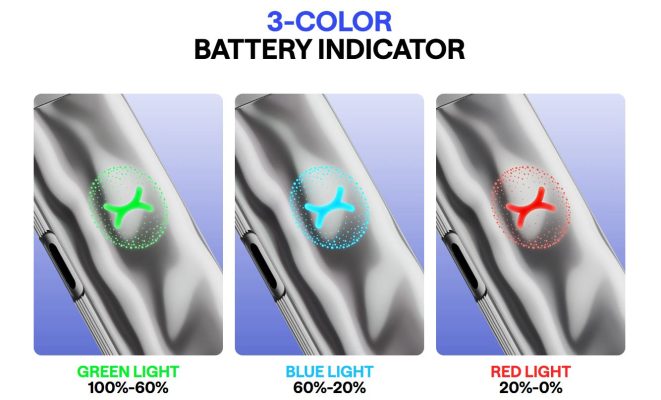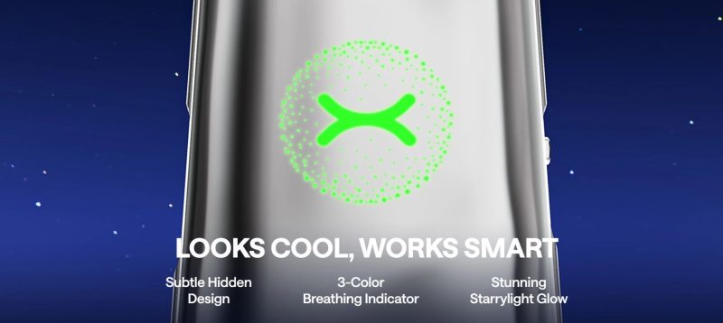 El Xlim Go 2, sin botones ni configuración, cuenta con un indicador inteligente de 3 colores que ofrece información del estado de carga, bajo un diseño sutil oculto y con un diseño de luz estrellada.