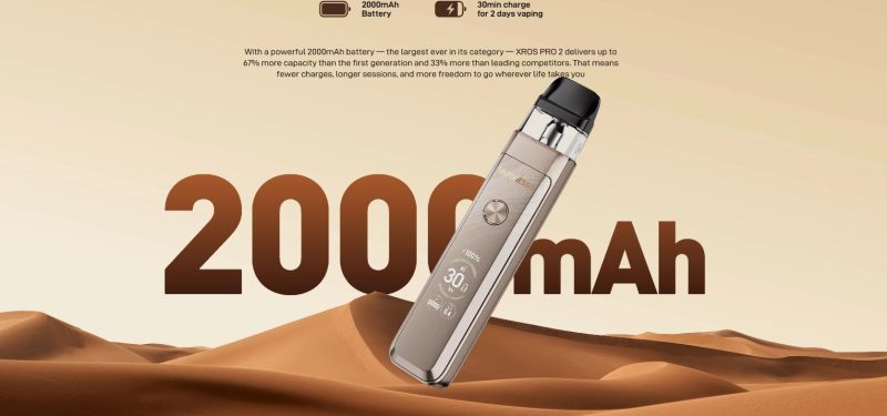 El dispositivo Xros Pro 2 de Vaporesso es un modelo mejorado respecto a su versión anterior, ya que se caracteriza por tener una batería interna de 2000mAh, por ser un 30% más ligero y 30W de potencia de salida.