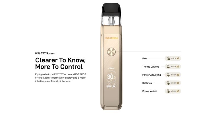 El Xros Pro 2 es un dispositivo premium, que combina potencia y ligereza con una batería de 2000mAh. Incorpora la tecnología COREX 3.0 para conseguir un sabor uniforme. Además, tiene una potencia de salida de 30W.
